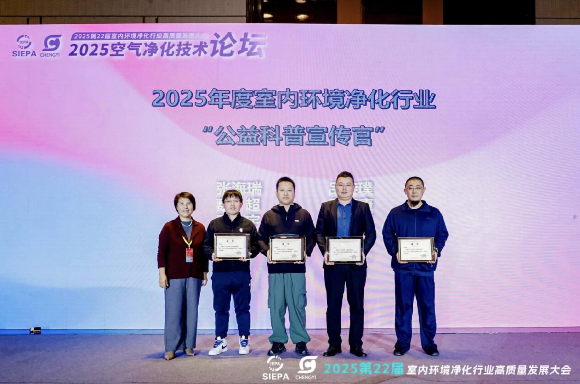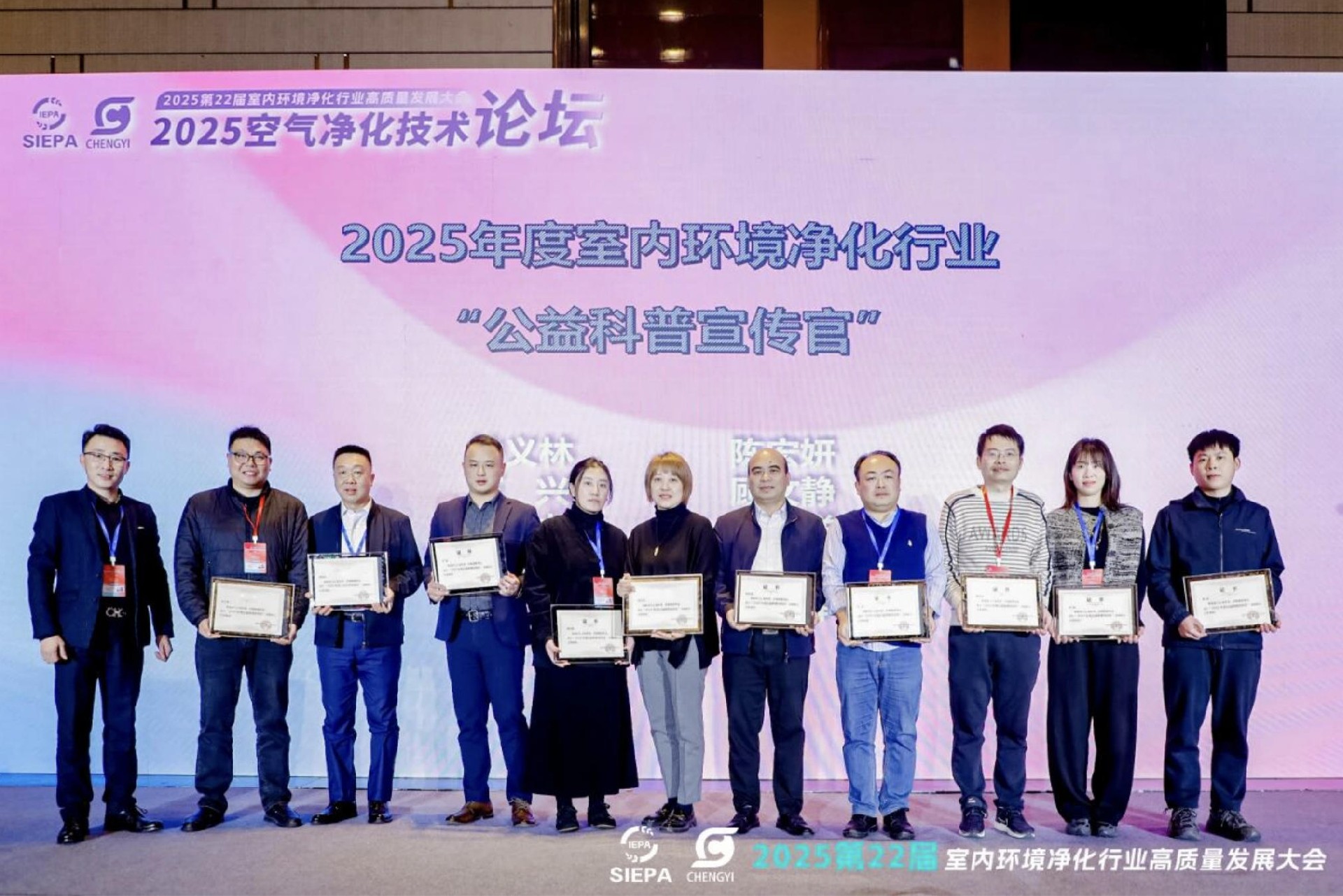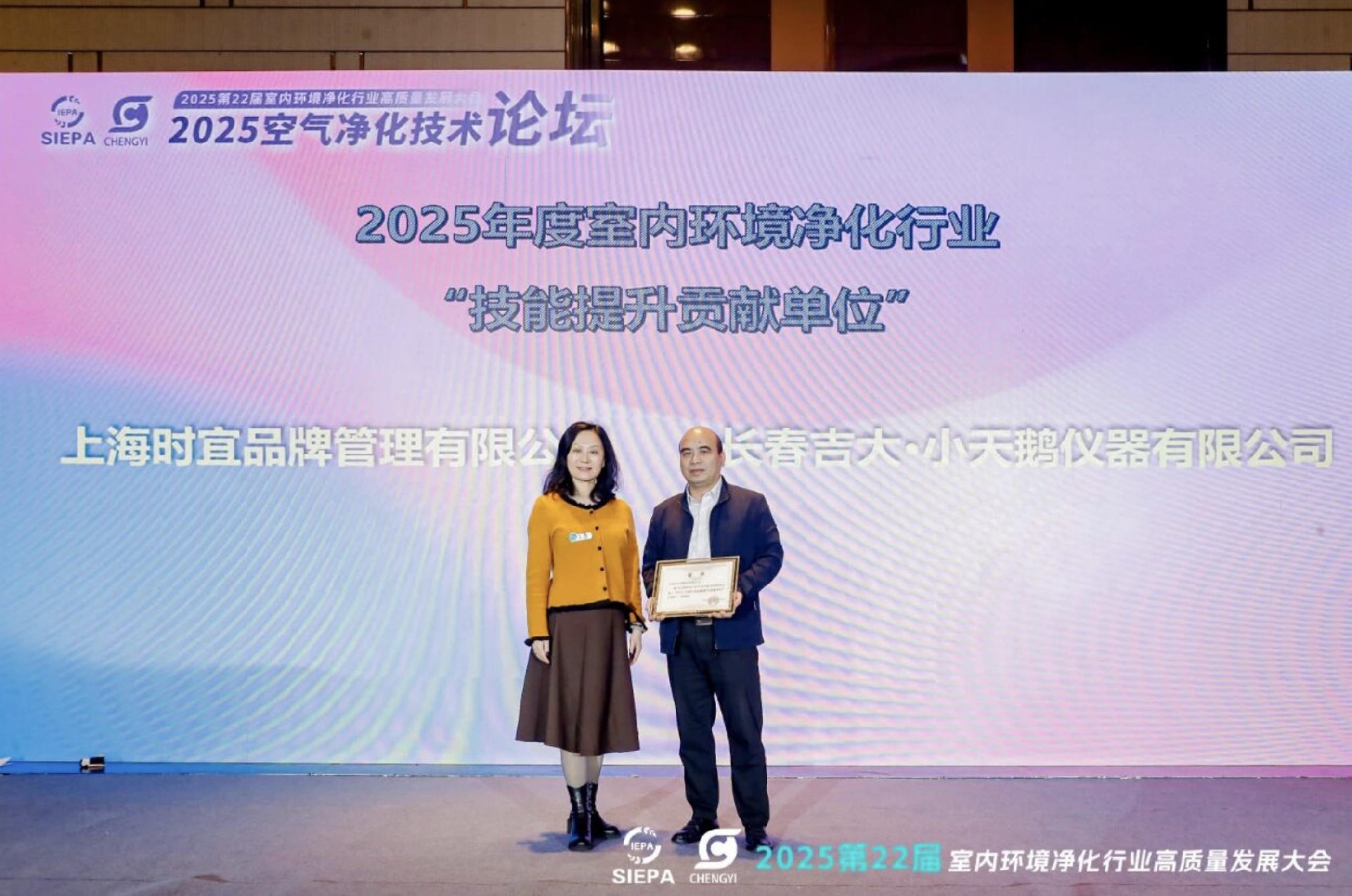 表彰仪式环节成为下午论坛的亮点。 组委会对上海时宜品牌管理有限公司等23 家 “人居环境优质供应商” 进行授牌,表彰其在产品质量、技术创新、服务保障等方面的标杆作用。 为上海时宜品牌管理有限公司、长春吉大·小天鹅仪器有限公司颁发了“行业技能提升贡献单位”荣誉证书,表彰他们对行业技能竞赛活动及行业人才培养的大力支持。 同时对参与标准编制、科普活动的单位及个人颁发“标准参编单位”、“科普贡献单位”及“公益科普宣传官”等多项荣誉证书,此次表彰不仅是对获奖单位与个人的肯定,更彰显了行业对规范化、高质量发展的追求 ——23 家优质供应商、多家标准参编单位的涌现,标志着室内环境净化行业正逐步形成 “标准引领、技术支撑、服务升级” 的发展格局。 论坛同期举办的 “2025 室内环境净化行业优品展示交易会” 持续开放,集中展示了空气净化设备、环保材料、智能监测系统等前沿产品与技术,为企业搭建了交流合作的实效平台,助力产业链上下游精准对接。 闭幕之际,主持人谢敏敏表示,本次论坛以 “共生” 为价值导向,以 “智启” 为技术路径,以 “焕新” 为发展目标,汇聚了行业智慧,凝聚了发展共识。未来,室内环境净化行业需持续深化跨领域协作,推动技术创新与模式革新,将论坛成果转化为推动人居环境升级的实际行动,为构建健康、低碳、智能的未来空间贡献行业力量。 此次高峰论坛的举办,不仅为室内空气净化行业搭建了高端交流平台,更彰显了行业响应国家战略、践行民生责任的使命担当。随着技术的持续迭代、标准的不断完善、生态的日益健全,室内环境净化行业必将迎来更高质量的发展。